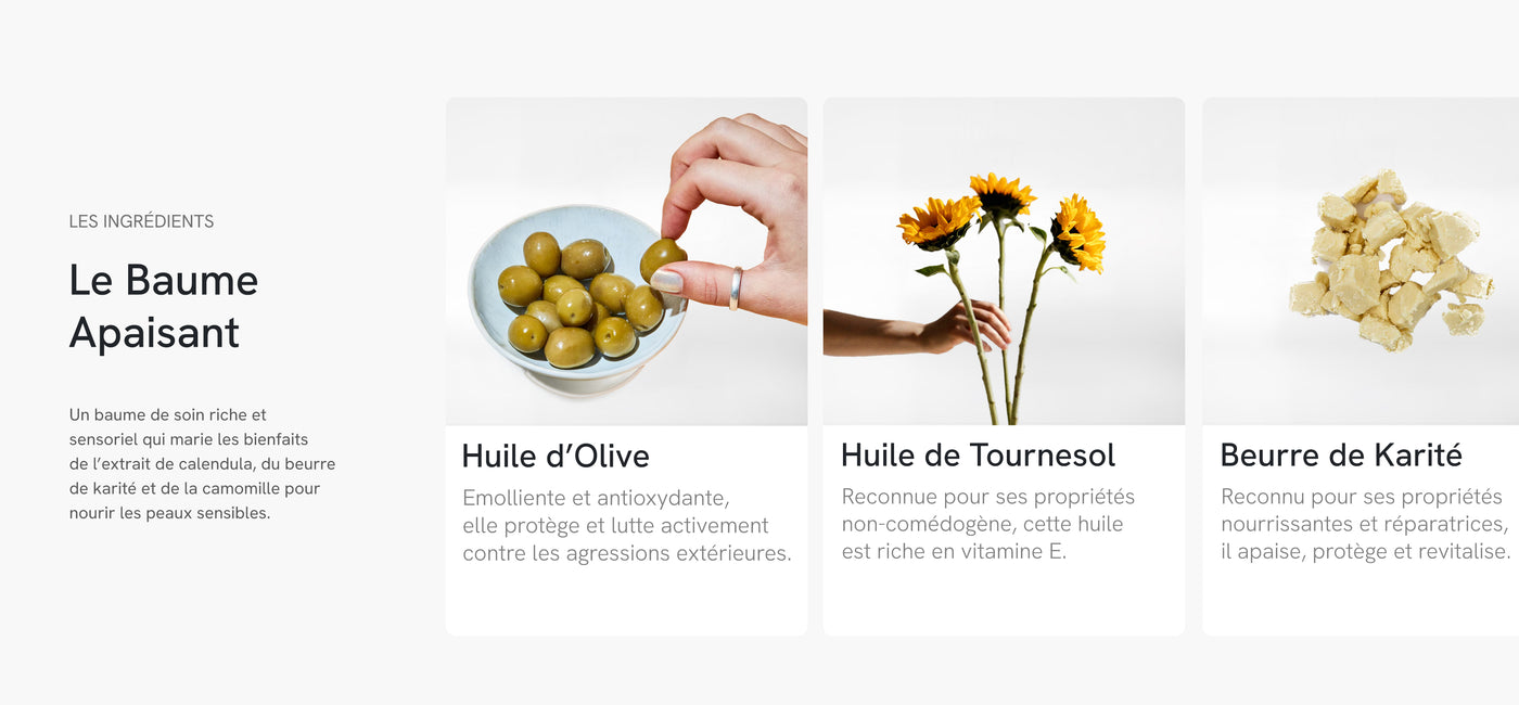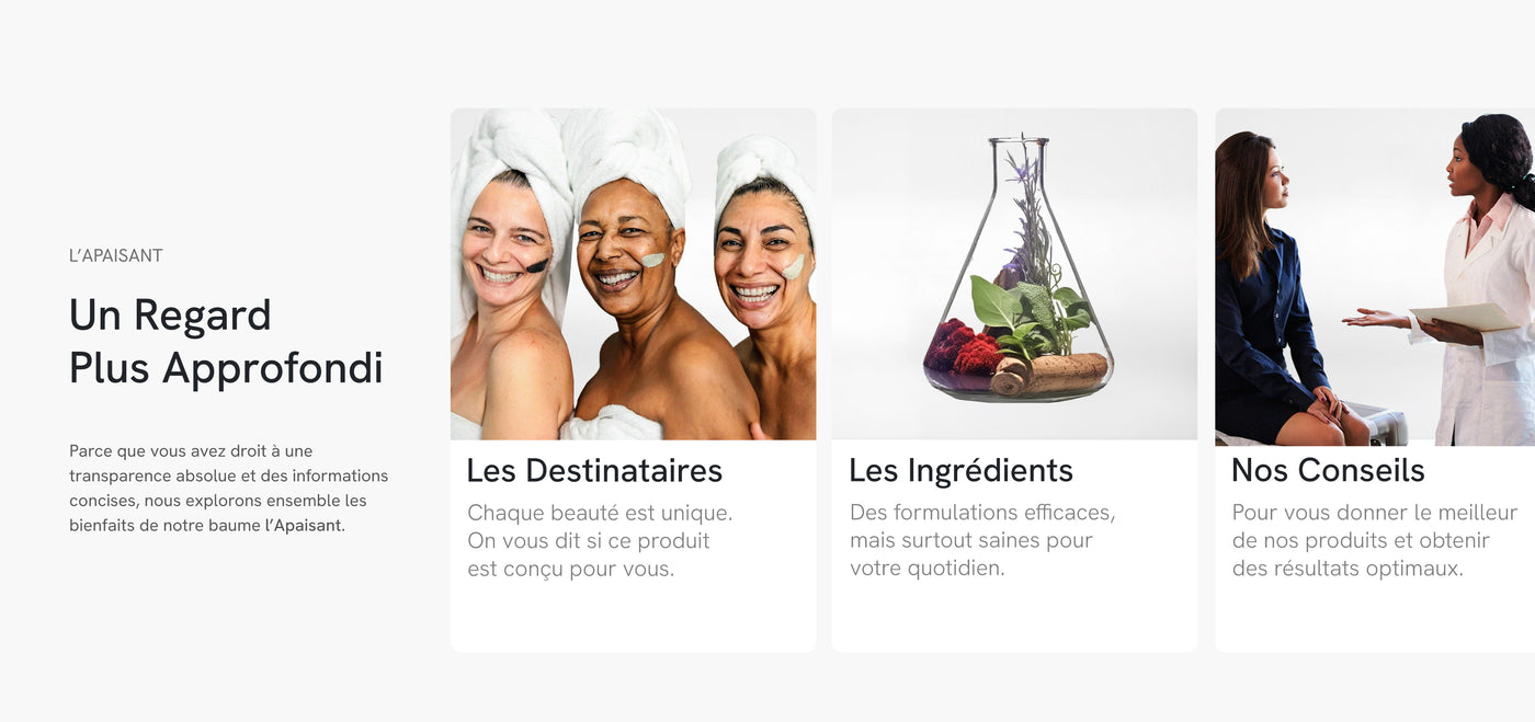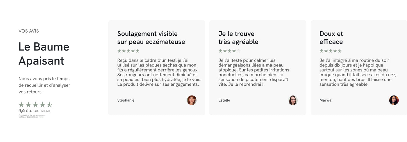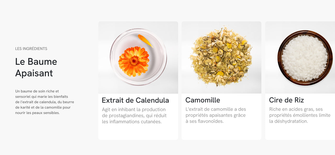 Contrairement aux baumes classiques souvent alourdissants ou parfumés à l’excès, L’Apaisant mise sur l’efficacité pure et la douceur absolue. Il répond aux besoins des peaux les plus exigeantes, avec une formule rassurante, polyvalente et profondément réparatrice. Résultat : une peau apaisée, protégée et durablement réconfortée.