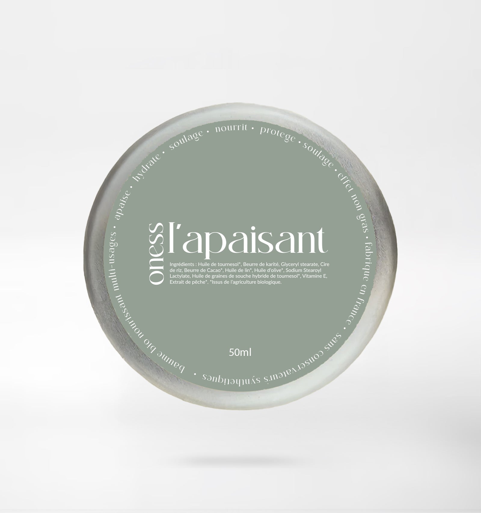 Enrichi en cires végétales et huiles riches en acides gras, L’Apaisant crée un bouclier naturel qui protège la peau de la déshydratation sans jamais l’étouffer. Il laisse une sensation de confort durable, même sur les zones les plus sèches.
