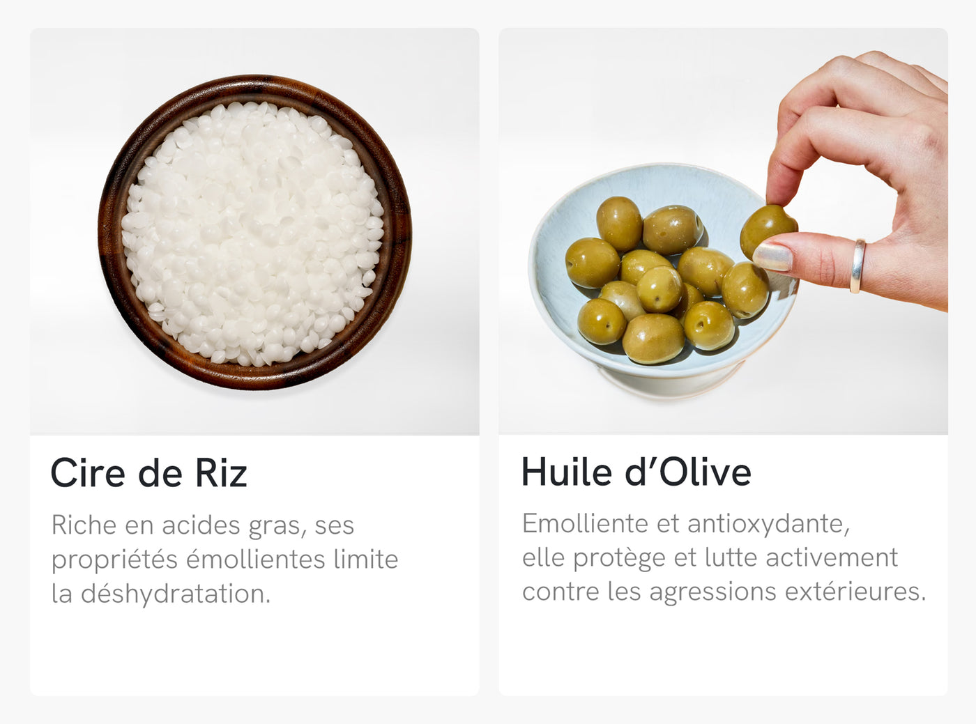 Riche en acide oléique et en polyphénols, l’huile d’olive est à la fois nourrissante, émolliente et antioxydante. Elle adoucit la peau, protège contre les agressions extérieures (froid, vent, pollution) et contribue à ralentir le vieillissement cutané prématuré.