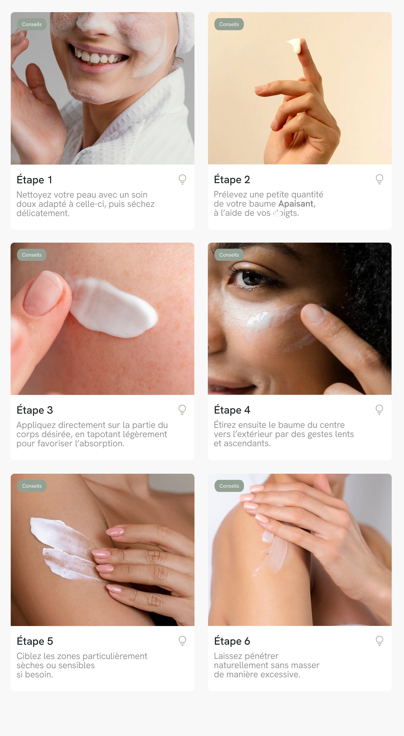 - Laissez pénétrer naturellement sans masser de manière excessive.